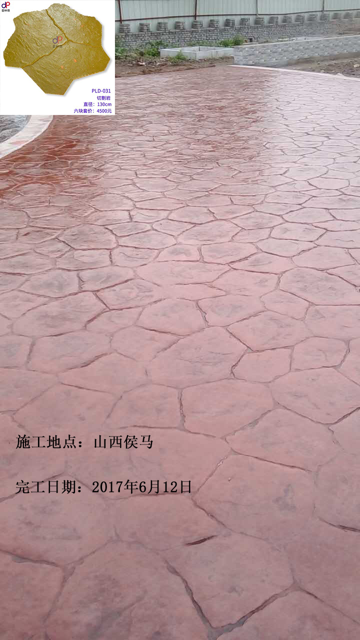 項(xiàng)目名稱:山西省侯馬市壓模壓花地坪工程 項(xiàng)目地址:山西省侯馬市 竣工時(shí)間:2017年06