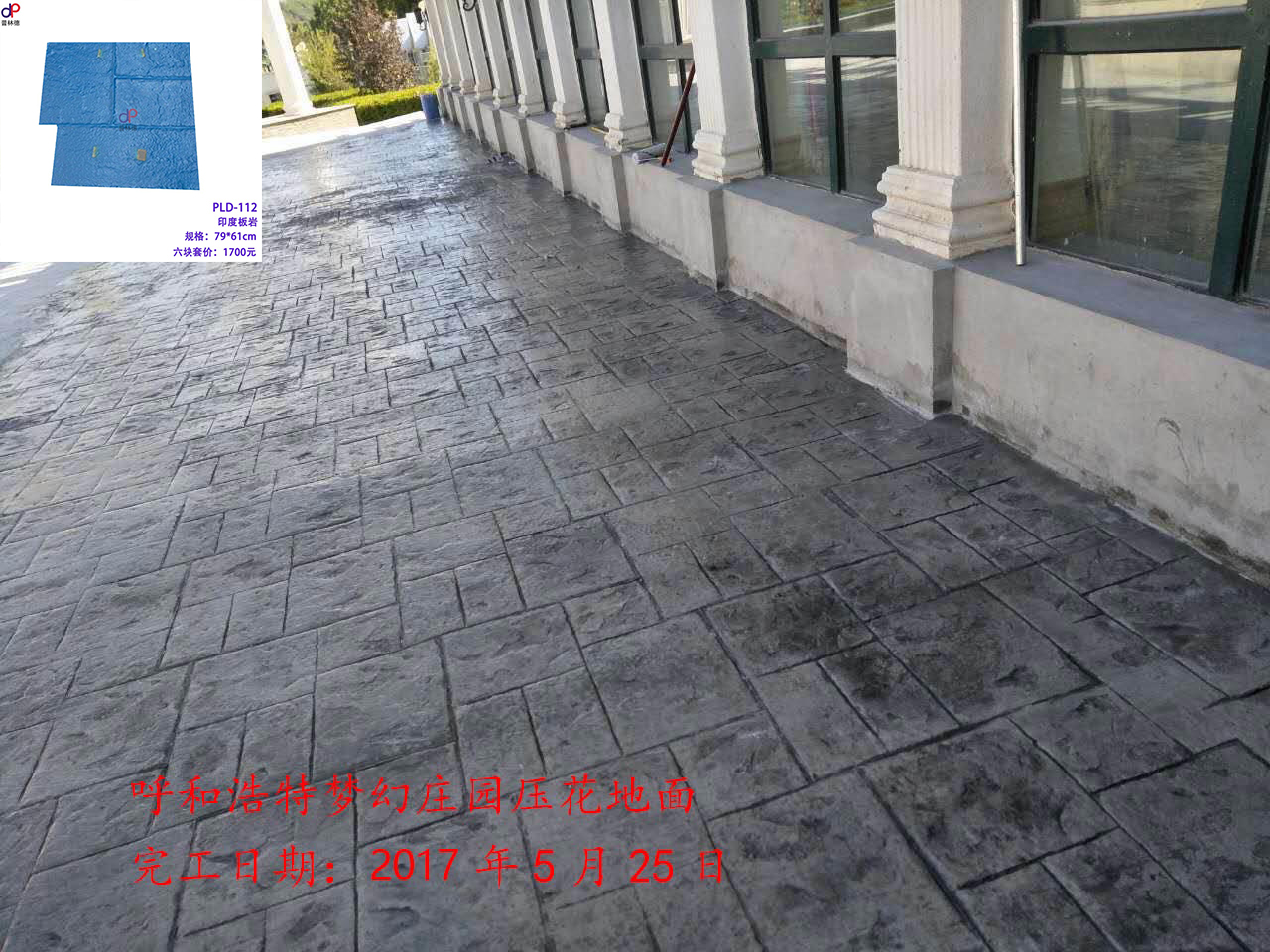 項(xiàng)目名稱:內(nèi)蒙古呼和浩特夢(mèng)幻莊園壓模壓花地坪工程 項(xiàng)目地址:內(nèi)蒙古呼和浩特 竣工時(shí)