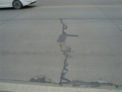 3、此種修補方法限于混凝土面板基礎較穩固時使用。如果面板已出現比較嚴重的錯臺、脫空,建議先打孔壓漿后再行條帶修補。