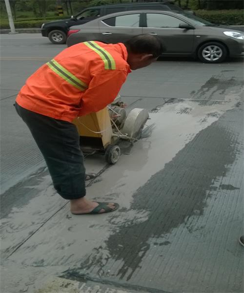 使用切割機沿劃出的平行線進行切割,切割深度達到8-10cm。注意及時使用清水沖洗地面,防止看不到線而切偏。